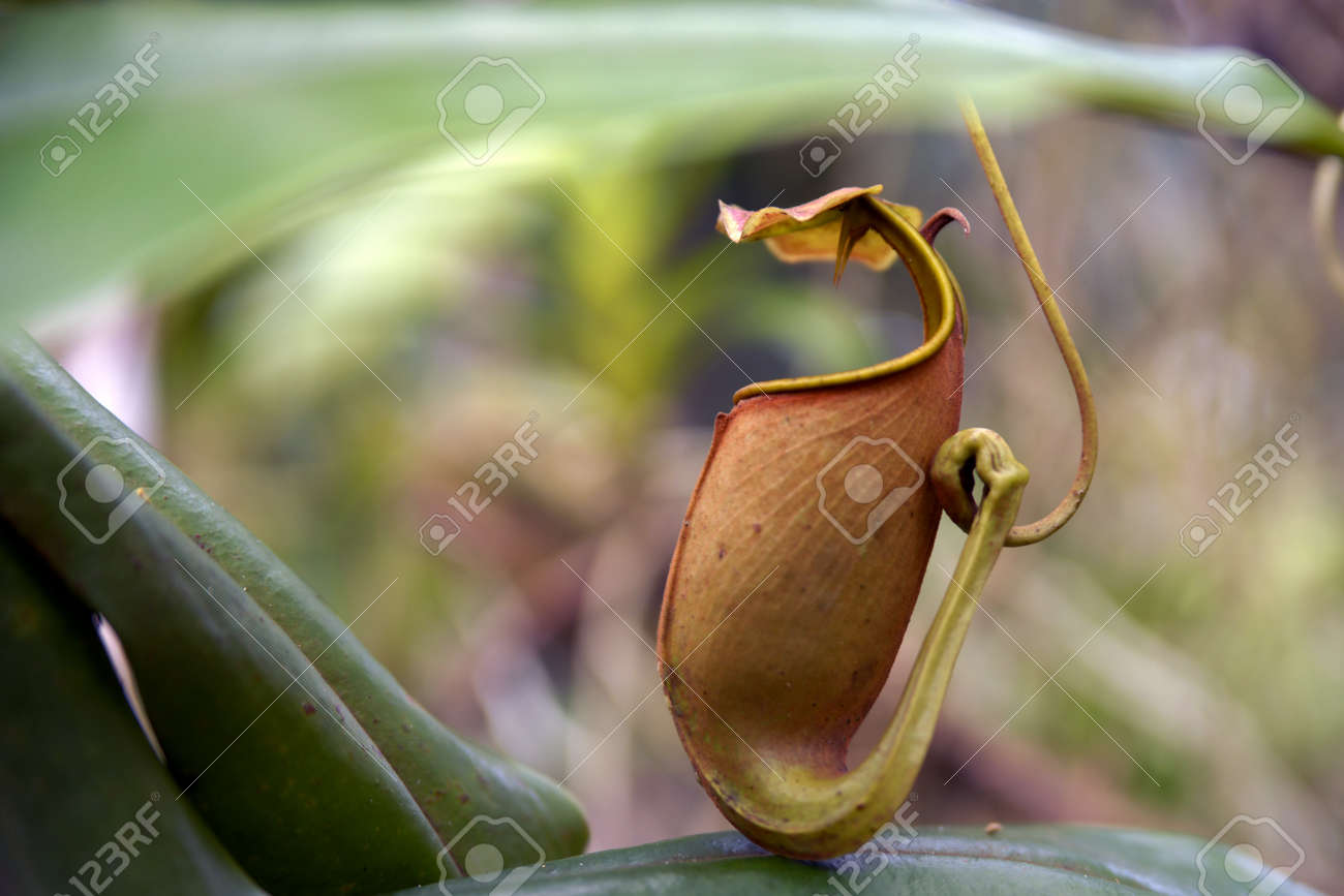 Nepenthes 보르네오의 자연 속에서 성장하는 곤충을 먹고.